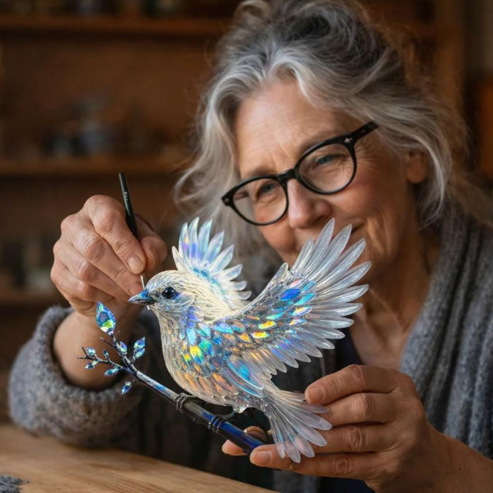 Manche Dinge fangen nicht nur Licht ein – sie fangen Herzen. Der Himmelsglanz ist genau so ein Stück: ein handgefertigter Vogel-Anhänger, der Ihr Zuhause mit Eleganz, Wärme und einem Hauch Magie erfüllt. Zart, künstlerisch und voller Charme – für alle, die Vögel lieben und ihr Zuhause mit etwas ganz Besonderem bereichern möchten.